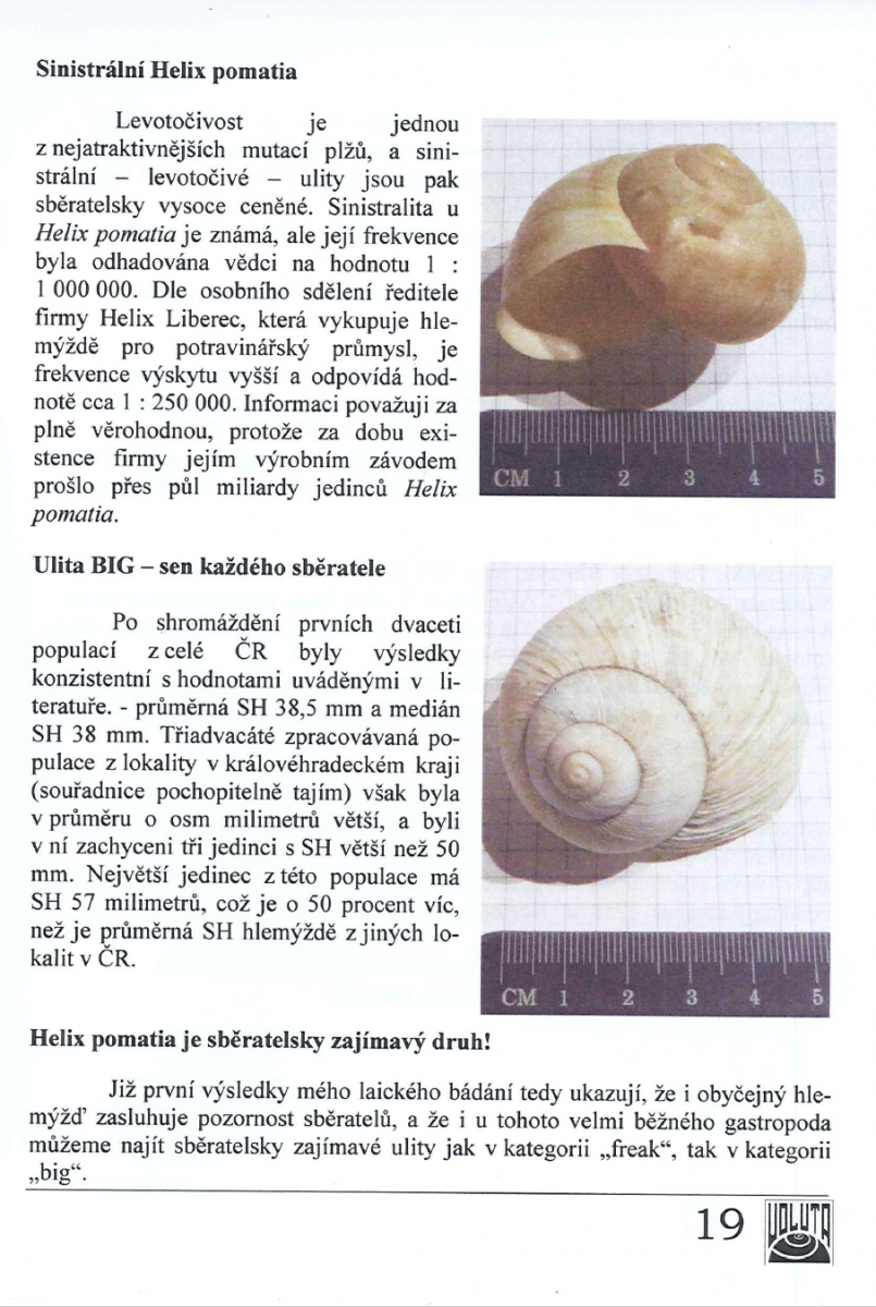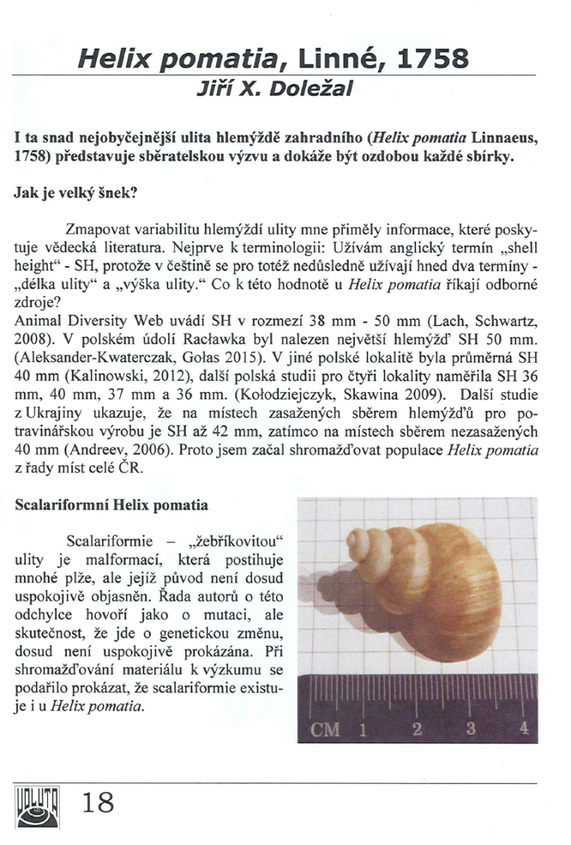 Cite as: Doležal, Jiří X. (2019). Helix pomatia (Linné, 1758) Voluta, Vol.93, Iss.3, pp.18 – 20.