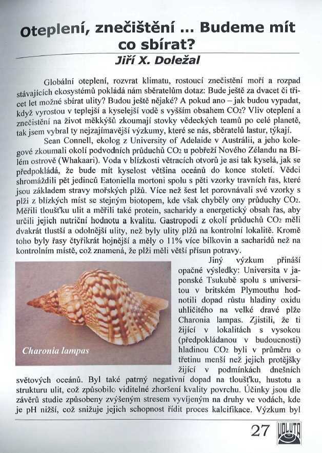 Cite as: Doležal, Jiří X. (2020). Lastury a znečištění. Voluta Vol. 99 Iss. 3, pp. 27 – 29.