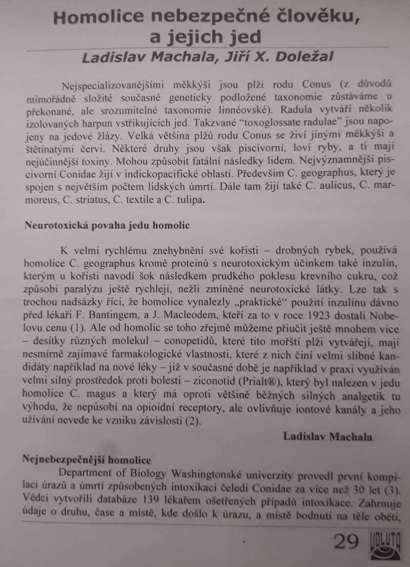 Voluta: Ladislav Machala, Jiří X. Doležal: Homolice nebezpečné člověku, a jejich jed